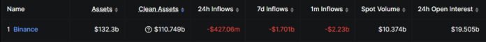 Figures from DeFiLlama were widely interpreted as indicating that Binance experienced over $2 billion in outflows over the preceding month.