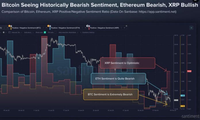 The internal mechanics of the derivatives market further explain why sentiment for Bitcoin and ETH remains “extremely bearish” while XRP traders position for upside.